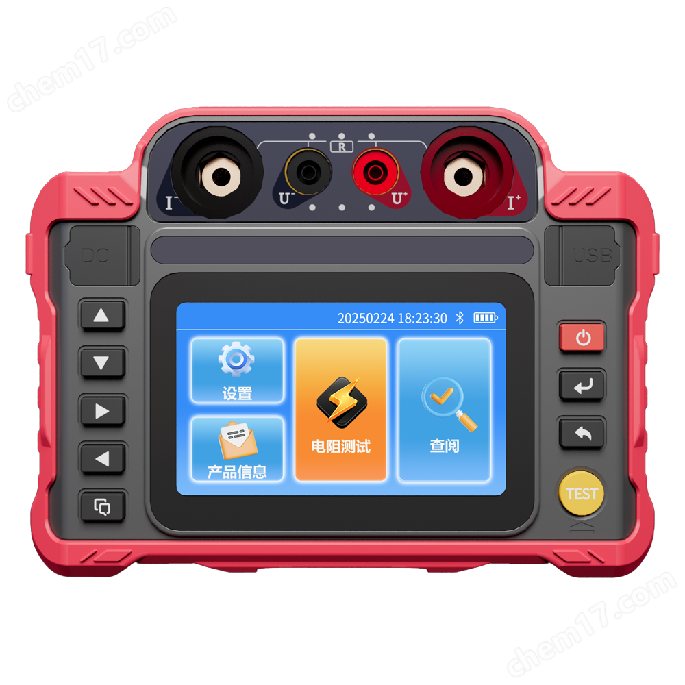 仪表采用5寸彩色LCD显示,中英文操作界面,清晰直观;还配有标准电阻,正式测试前可以对仪表进行精度自检;仪表具有量程宽、数据存储量大、抗干扰能力强、操作简单、手持式、体积小、便于携带等优点;还可以选配打印机,用于数据打印。